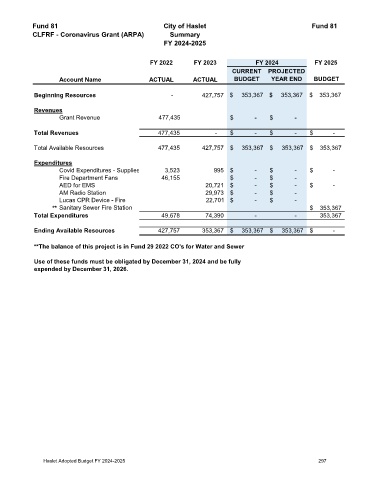 Use of these funds must be obligated by December 31, 2024 and be fully