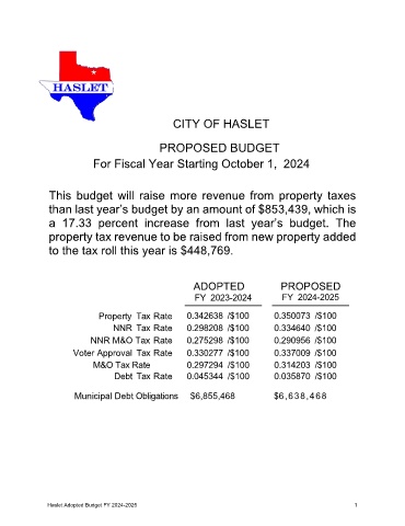 Haslet Adopted Budget FY 2024-2025 1
