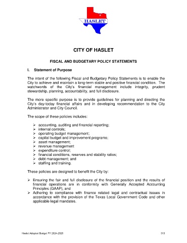 The intent of the following Fiscal and Budgetary Policy Statements is to enable the