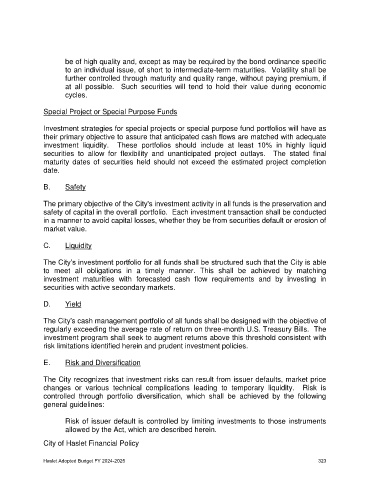 securities to allow for flexibility and unanticipated project outlays. The stated final