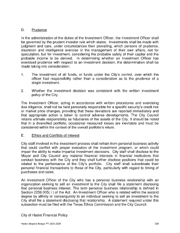 impair the ability to make impartial investment decisions. City staff shall disclose to the