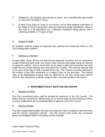 X. INVESTMENT POLICY ADOPTION AND REVIEW