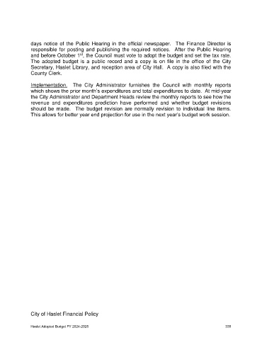 days notice of the Public Hearing in the official newspaper. The Finance Director is