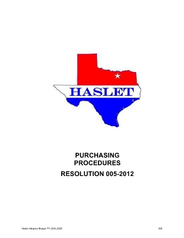 PURCHASING PROCEDURES RESOLUTION 005-2012 Haslet Adopted Budget FY 2024-2025 389