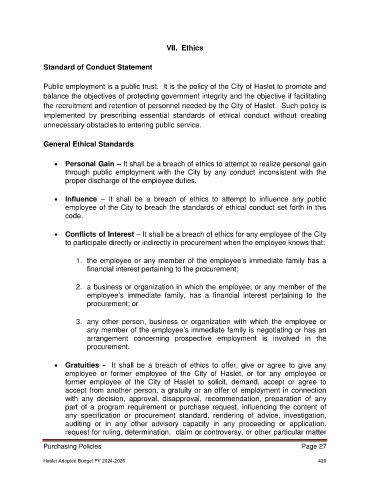 • Conflicts of Interest – It shall be a breach of ethics for any employee of the City