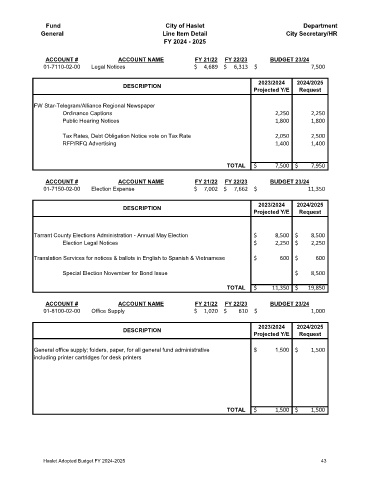Haslet Adopted Budget FY 2024-2025 43