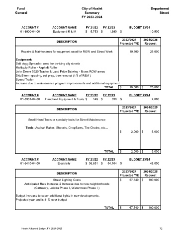 Repairs & Maintenance for equpment used for ROW and Street Work 10,500 25,000