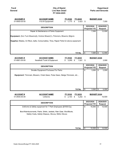 Smaller Equipment Puchases For Parks $ 3,000 $ 5,000