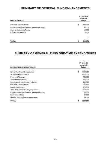 SUMMARY OF GENERAL FUND ENHANCEMENTS
