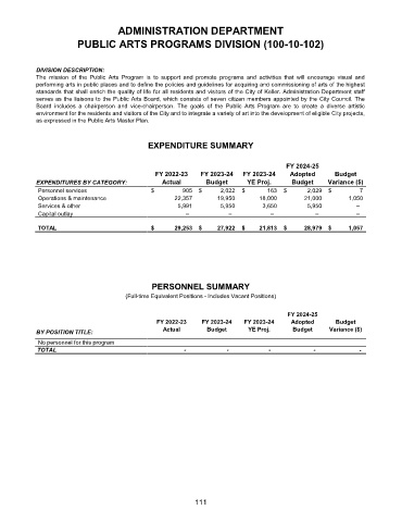 PUBLIC ARTS PROGRAMS DIVISION (100-10-102)