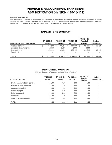 payable, cash and investment management, and capital financing. The department also provides financial services for the Keller
