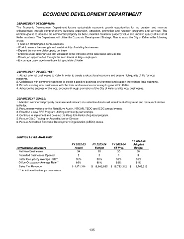Keller residents. The Department will utilize the Economic Development Strategic Plan to assist the City of Keller in the following