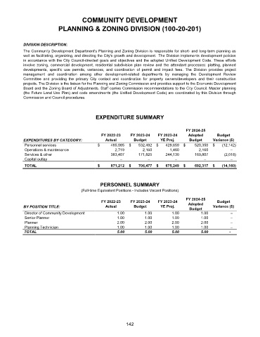 projects. The Division is the liaison for the Planning and Zoning Commission and provides support to the Economic Development