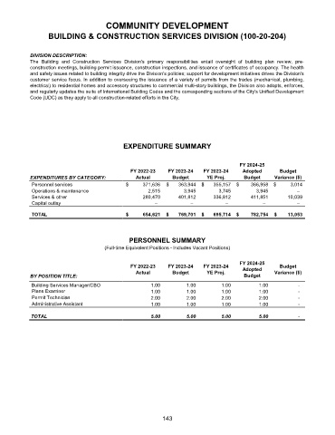 The Building and Construction Services Division's primary responsibilities entail oversight of building plan review, pre-