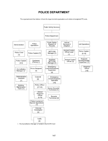 The organizational chart below reflects the departmental organization as it relates to budgeted FTE costs.