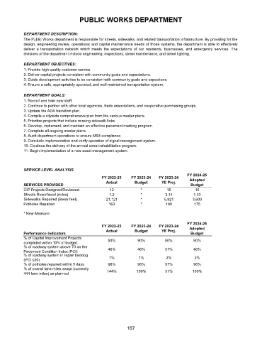 The Public Works department is responsible for streets, sidewalks, and related transportation infrastructure. By providing for the