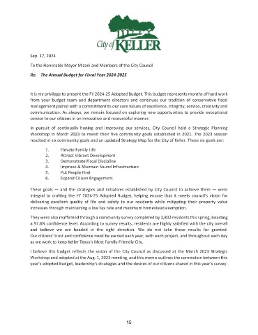 year's adopted budget, leadership's strategies and the desires of our citizens shared in this year's survey.