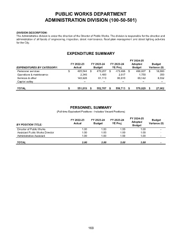 The Administrative division is under the direction of the Director of Public Works. The division is responsible for the direction and