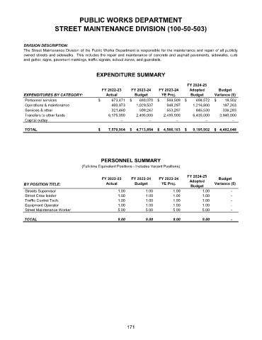 The Street Maintenance Division of the Public Works Department is responsible for the maintenance and repair of all publicly