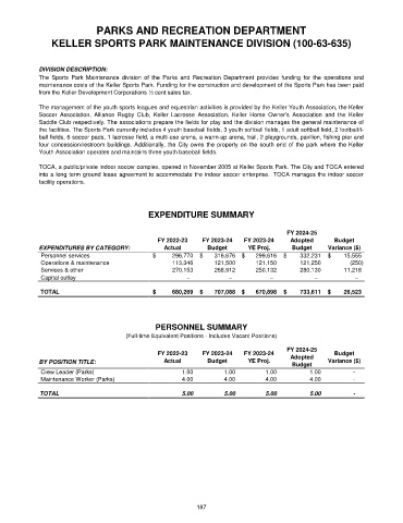KELLER SPORTS PARK MAINTENANCE DIVISION (100-63-635)