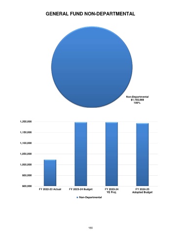 GENERAL FUND NON-DEPARTMENTAL Non-Departmental $1,193,069 100% 1,200,000 1,150,000 1,100,000 1,050,000 1,000,000 950,000 900,000 FY 2022-23 Actual FY 2023-24 Budget FY 2023-24 FY 2024-25 YE Proj. Adopted Budget Non-Departmental 190