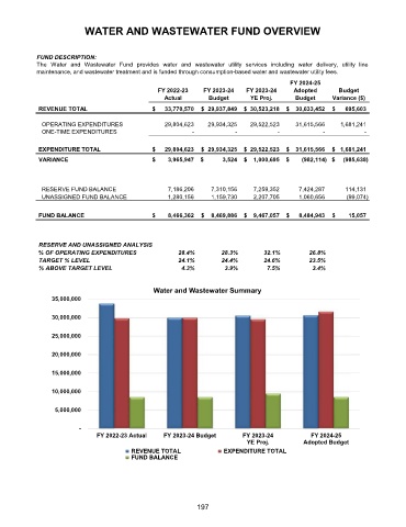 The Water and Wastewater Fund provides water and wastewater utility services including water delivery, utility line