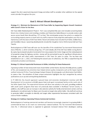 Strategy 2.1: Maintain the Momentum of Old Town Keller by Supporting Organic Growth Consistent