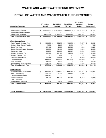 DETAIL OF WATER AND WASTEWATER FUND REVENUES