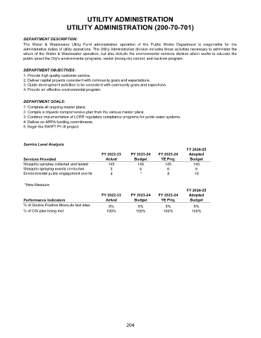 administrative duties of utility operations. The Utility Administration division includes those activities necessary to administer the