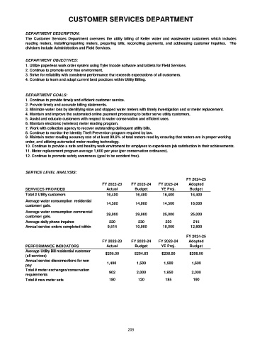 The Customer Services Department oversees the utility billing of Keller water and wastewater customers which includes