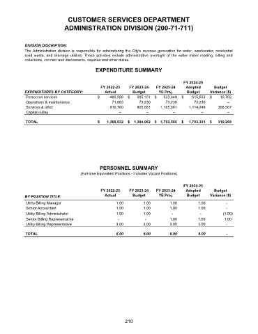 The Administration division is responsible for adminstering the City's revenue generation for water, wastewater, residential