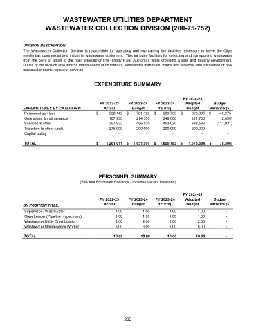 WASTEWATER COLLECTION DIVISION (200-75-752)