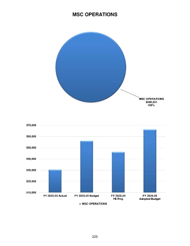 MSC OPERATIONS MSC OPERATIONS $566,231 100% 570,000 560,000 550,000 540,000 530,000 520,000 510,000 FY 2022-23 Actual FY 2023-24 Budget FY 2023-24 FY 2024-25 YE Proj. Adopted Budget MSC OPERATIONS 225