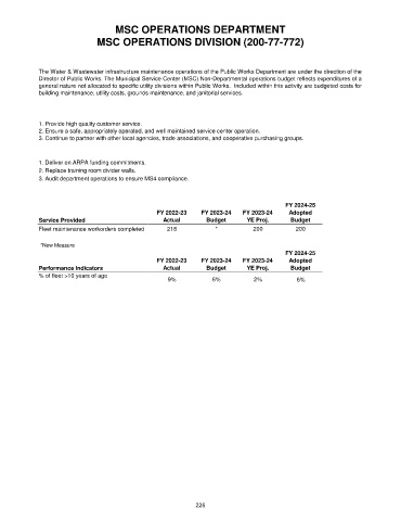 Director of Public Works. The Municipal Service Center (MSC) Non-Departmental operations budget reflects expenditures of a