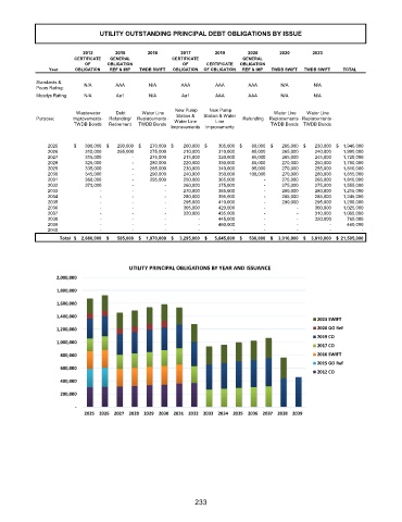 UTILITY OUTSTANDING PRINCIPAL DEBT OBLIGATIONS BY ISSUE