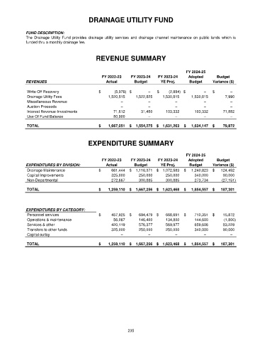 The Drainage Utility Fund provides drainage utility services and drainage channel maintenance on public lands which is