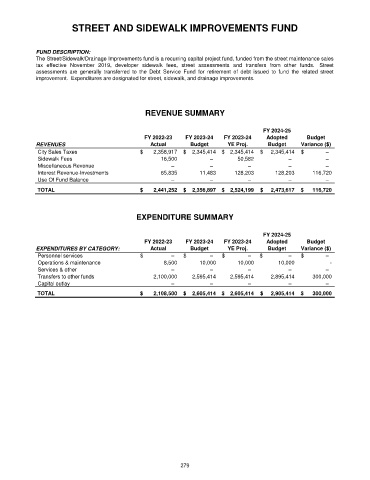 improvement. Expenditures are designated for street, sidewalk, and drainage improvements.