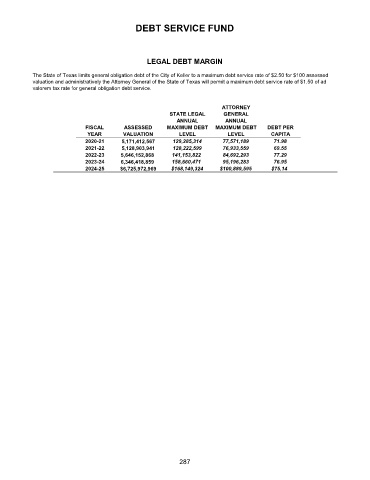 The State of Texas limits general obligation debt of the City of Keller to a maximum debt service rate of $2.50 for $100 assessed