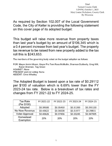 Page 3 - CityofKellerFY25Budget