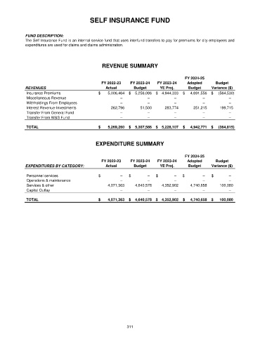 The Self Insurance Fund is an internal service fund that uses interfund transfers to pay for premiums for city employees and