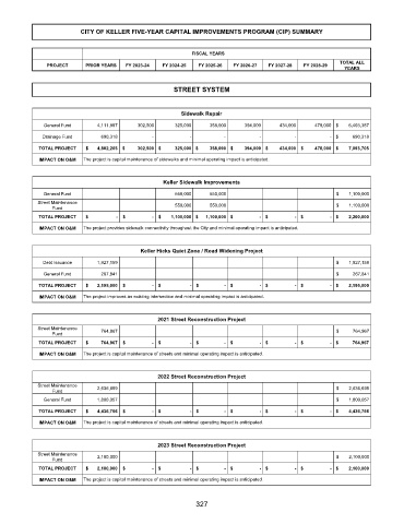 CITY OF KELLER FIVE-YEAR CAPITAL IMPROVEMENTS PROGRAM (CIP) SUMMARY