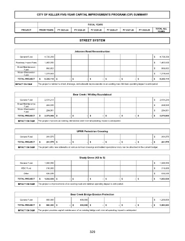 CITY OF KELLER FIVE-YEAR CAPITAL IMPROVEMENTS PROGRAM (CIP) SUMMARY