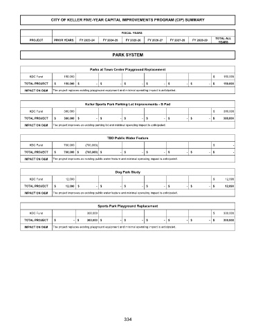 CITY OF KELLER FIVE-YEAR CAPITAL IMPROVEMENTS PROGRAM (CIP) SUMMARY