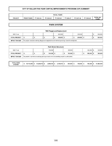 IMPACT ON O&M The project replaces existing playground equipment and minimal operating impact is anticipated.