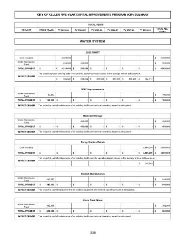 CITY OF KELLER FIVE-YEAR CAPITAL IMPROVEMENTS PROGRAM (CIP) SUMMARY