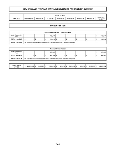 CITY OF KELLER FIVE-YEAR CAPITAL IMPROVEMENTS PROGRAM (CIP) SUMMARY
