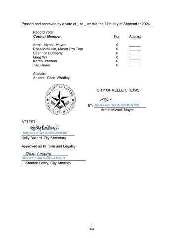 Passed and approved by a vote of _ to _ on this the 17th day of September 2024.