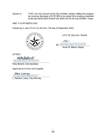 Section 5: THAT, the City Council of the City of Keller, hereby ratifies the property