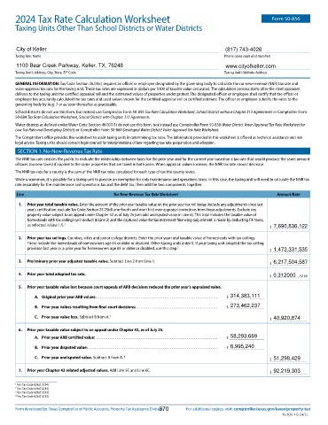 The Comptroller’s office provides this worksheet to assist taxing units in determining tax rates. The information provided in this worksheet is offered as technical assistance and not