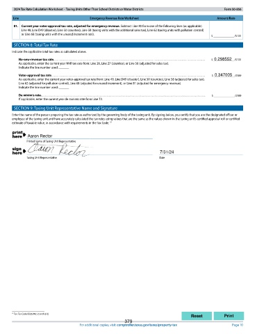 Enter the name of the person preparing the tax rate as authorized by the governing body of the taxing unit. By signing below, you certify that you are the designated officer or